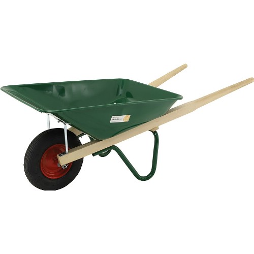 Klassisk skottkärra med stabil och välbalanserad konstruktion. Ergonomiskt utformad så att man bara behöver lyfta 15-20% av lasten. Träskalmar. Pulverlackerad korg och rörunderrede. Levereras förmonterad med kullagrat luftgummihjul. Hjuldimension 4,00-8, 4-lags. Maxlast 200 kg.