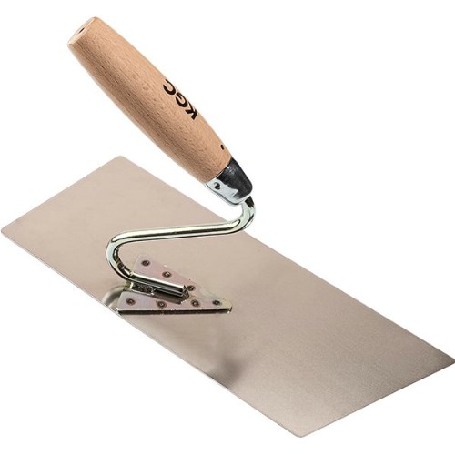 Fasadmurningsslev med de rätta vinklarna. För murning av tegel och block. Ovalsvarvat, olackat trähandtag för optimalt grepp. Rostfritt stål. Unik konstruktion med ergonomiska vinklar och balans som stödjer kroppens mest naturliga sätt att arbeta. Tyngden av bruket hamnar i armens förlängning vilket minskar belastningen på arm, handled och hand. För högerhänta.