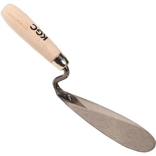 Tungslev med koniskt slipat blad. Olackat trähandtag för bättre grepp.