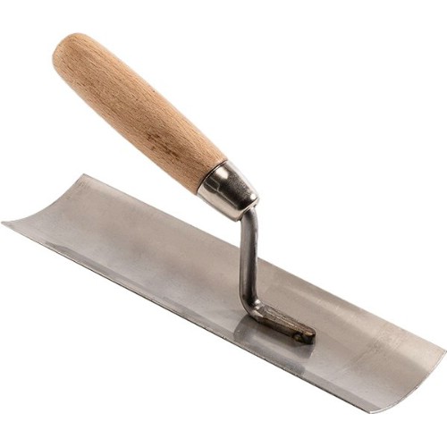 Hålkälstål av rostfritt stål med trähandtag. Radie 50 mm.